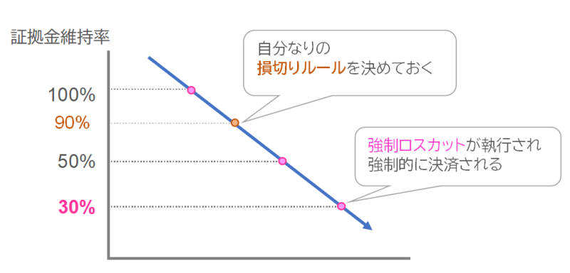 ロスカットが行われる手前で、早期にポジションを解消すること=損切りを考えておくことはとても重要です。